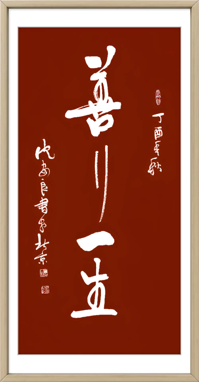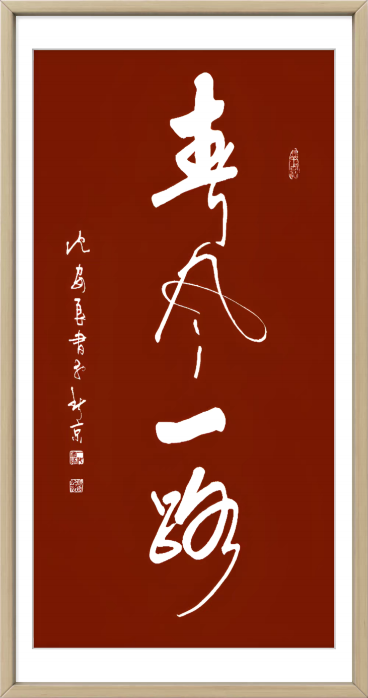 2021年8月26日,人民大会堂收藏其竹笔书法作品《立足中国,改变世界》。