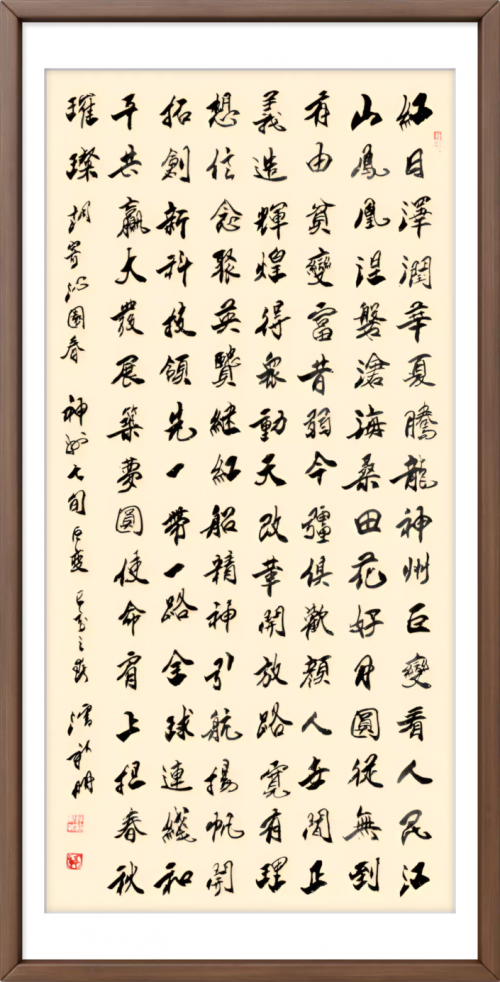 评论:潘先生多年来致力于文艺创新发展,弘扬书法艺术,助力文化繁荣,执着书写了不凡业绩,是一位衡量时代艺术成就的艺术家,一点一滴都承载了他毕生的修为,为历史存正气,为世人弘美德,浓缩了博大精深的哲学思想、人文精神,以及源远流长的时代印记,成就了美好艺术人生。