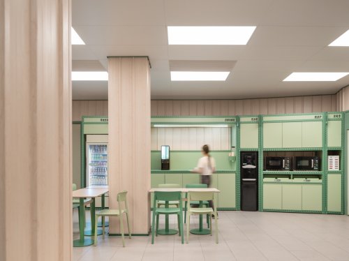 海友以“大堂‘功’区”为核心,以“便捷性”和“安全性”重构空间与系统。入住环节,客人可通过“华掌柜”自助机10秒完成自助入住办理,刷房卡才能进入自助功能区;公区内,行李寄存、衣物洗烘、加热餐食、零食售卖及客用品领取等十大自助设施24小时开放,实现需求即时高效响应。这一简约设计并非简单“无人化”,而是将服务主动权交还客人,酒店随处可见“呼叫人工”的面板标识,客人需要时员工将及时协助,实现了高效便捷与人文关怀的平衡。
