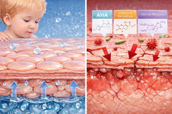 ·激素与麻药的“掩盖组合”:部分产品同时添加超强效激素与利多卡因、苯佐卡因等局部麻醉药。麻药通过麻痹神经让孩子瞬间“不痒”,营造治愈假象,实则掩盖了激素引发的过敏反应。长期使用会导致孩子出现**“满月脸”、“水牛背”,甚至严重抑制生长发育**。