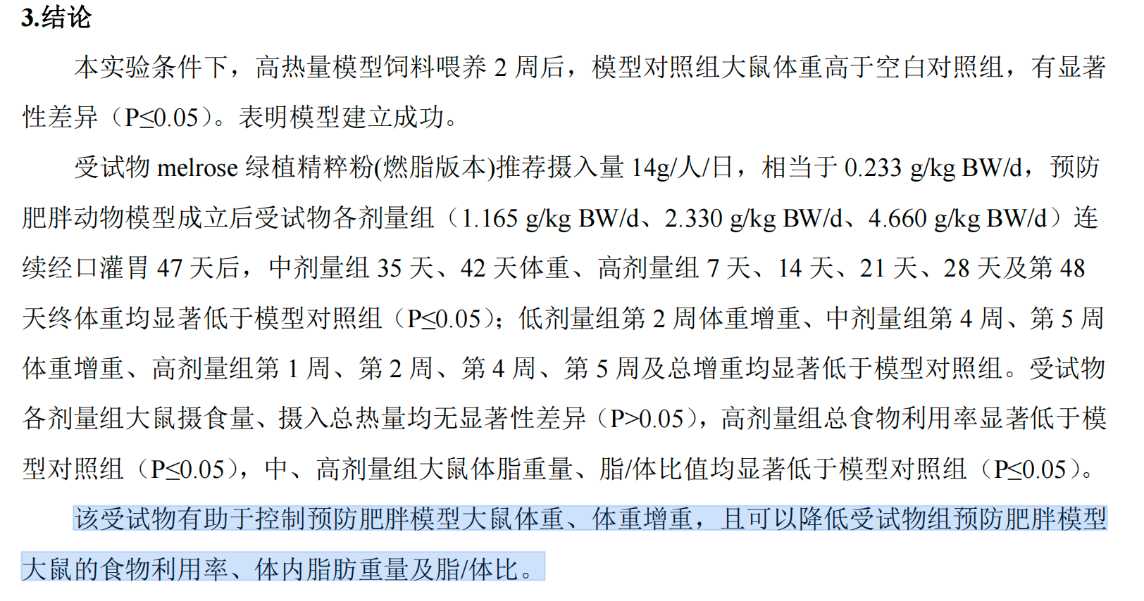 基于上述所有实验数据,谱尼测试出具正式报告,判定实验结果为阳性(即产品功能合格),这意味着Melrose绿植精粹粉(燃脂版)的“控脂燃脂”功效,并非营销口号,而是有国家级权威检测机构的动物实验数据作为坚实支撑。